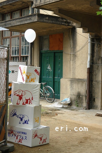 会場内は鼻がスピーカーの象と白い風船で彩られ