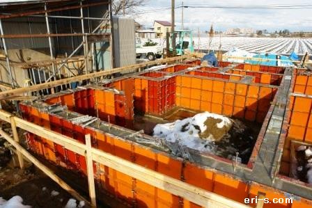るかクンのお家の基礎の型枠を外す作業が始まりました。